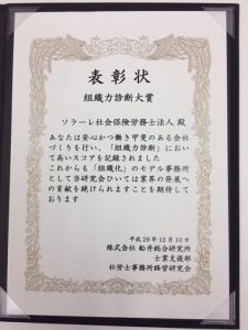 船井総研さんの社労士経営研究会で2017年の「組織力診断大賞」を受賞しました!