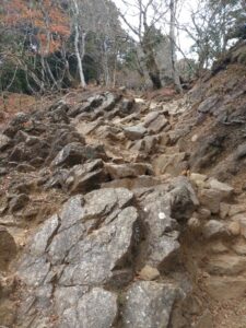 大山阿夫利神社下社まではケーブルカーで行き、そこから本社まで片道90分ほどの登山スタートです。低山とはいえ、なかなかの急こう配で、序盤からしっかり息が上がりました…。