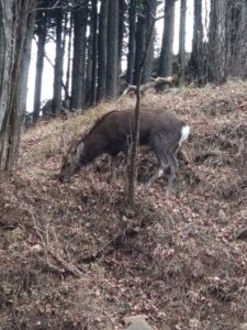 道中では、なんと野生のシカにも遭遇!かわいいというより、角が立派で怖かったです(汗)